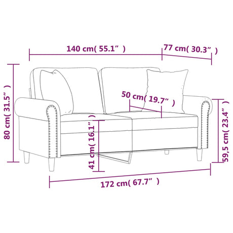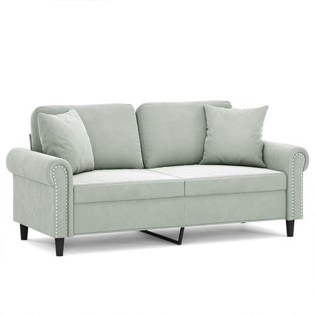 2-Seater Sofa with Throw Pillows Light Grey 140 cm Velvet