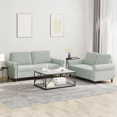 2 Piece Sofa Set with Pillows Light Grey Velvet