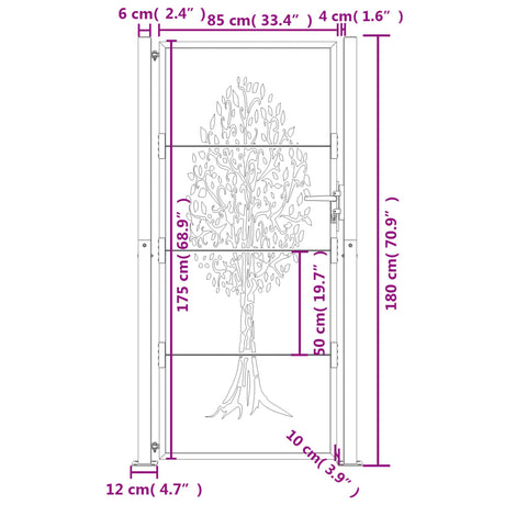 Garden Gate Anthracite 105x180 cm Steel Tree Design