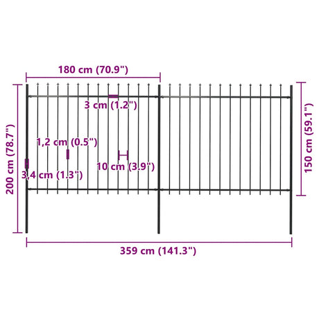 Garden Fence with Spear Top Steel 359x150 cm Black