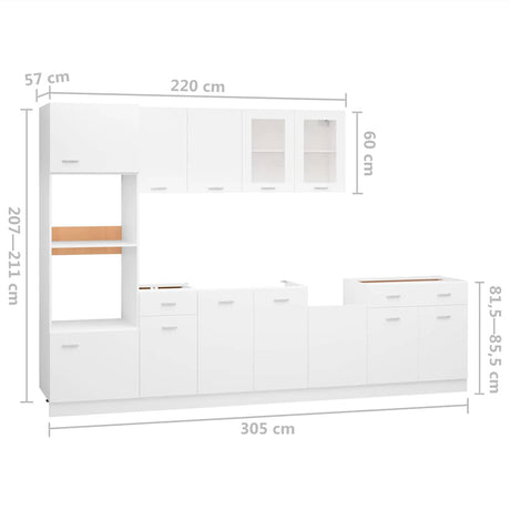8 Piece Kitchen Cabinet Set Lyon White Engineered Wood