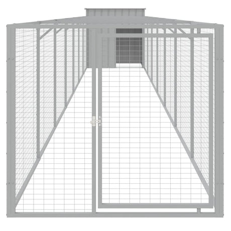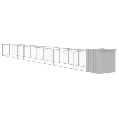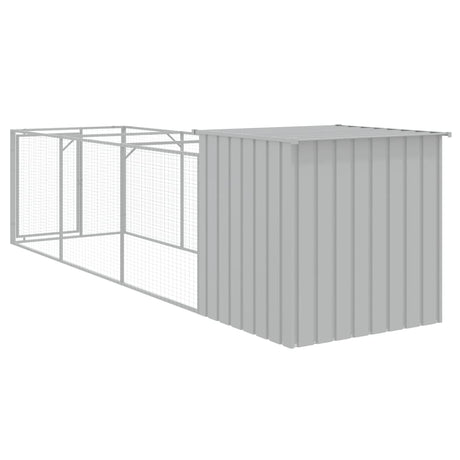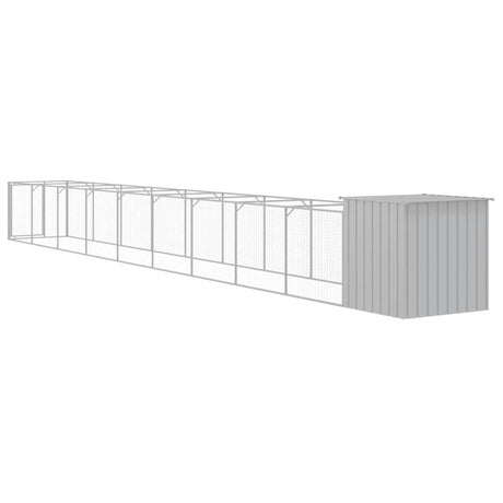 Dog House with Run Light Grey 110x405x110 cm Galvanised Steel