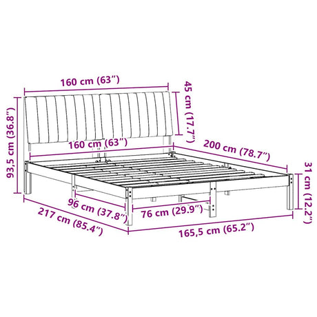 Bed Frame with Headboard Brown 150 x 200 cm Solid Pine Wood