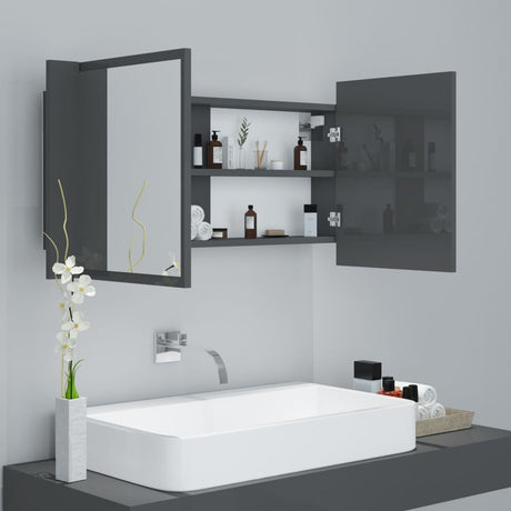 LED Bathroom Mirror Cabinet High Gloss Grey 90x12x45 cm Acrylic