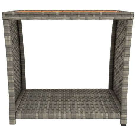 Tea Table with Wooden Top Grey Poly Rattan&Solid Wood Acacia