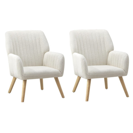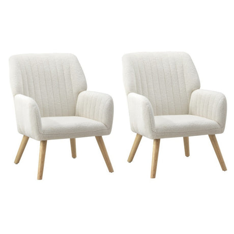 Oikiture 2x Armchair Lounge Sofa Chair Sherpa White