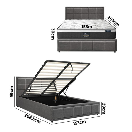 Oikiture Bed Frame With Mattress Set Queen Size Gas Lift Grey BOSS