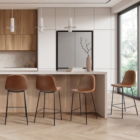 Oikiture 4x Bar Stools Kitchen Dining Chair PU Leather Brown