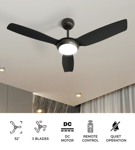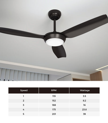 Vevare 52" Ceiling Fan with Light DC Remote Control 5 Speed Black