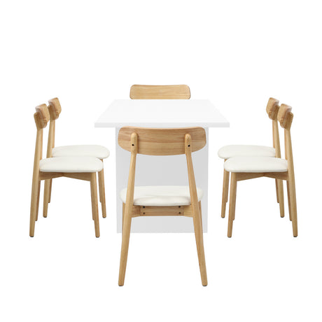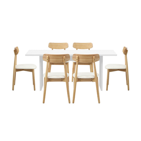 Oikiture 6-Seater Dining Table and Chairs Set Wooden White