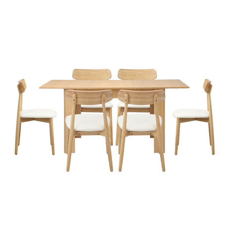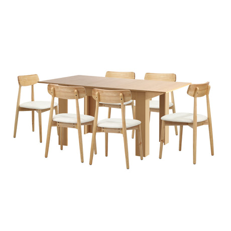 Oikiture 160cm Extendable Dining Table with 6x Dining Chairs PU Leather Natural
