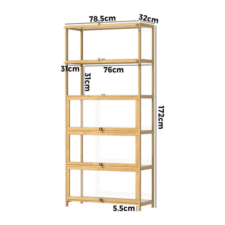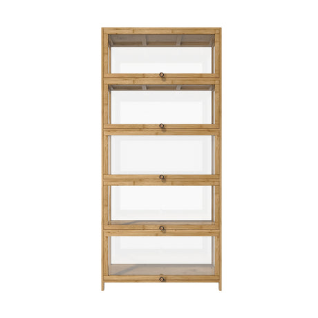 Oikiture Display Cabinet 5-Tier Clear Shelves Oak