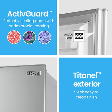 GECKO 139L Upright Portable Fridge / Freezer, 12V/24V for Motorhome and Caravan, Silver