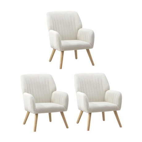 Oikiture 3x Armchair Lounge Sofa Chair Sherpa White