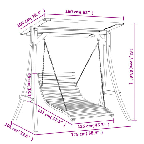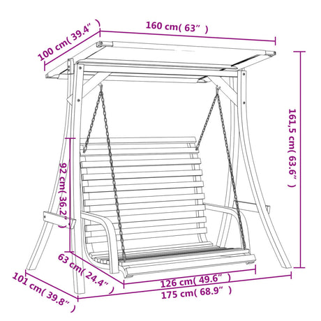 Swing Bench with Canopy Solid Wood Spruce with Teak Finish