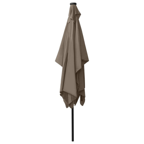 Garden Parasol with LEDs and Steel Pole Taupe 2x3 m