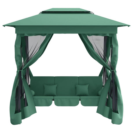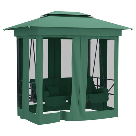 Garden Gazebo with Convertible Swing Bench Green Fabric&Steel
