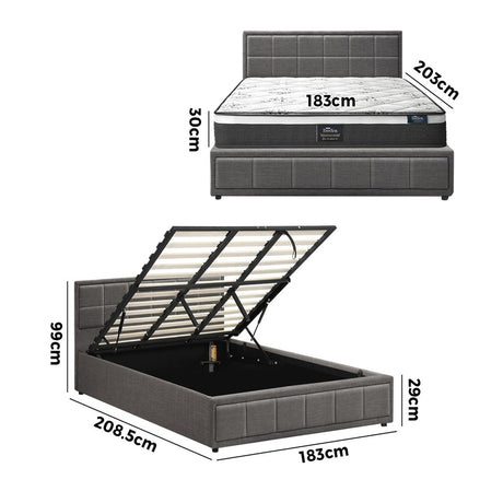 Oikiture Bed Frame With Mattress Set King Size Gas Lift Grey BOSS