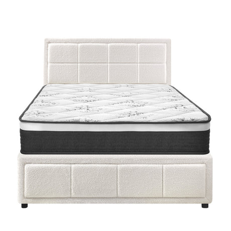 Oikiture Bed Frame with Single Size Mattress Set Boucle Fabric White