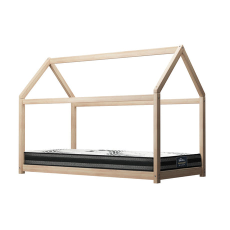 Oikiture Kids Bed Frame and Mattress Single House Teepee Triangle Beds