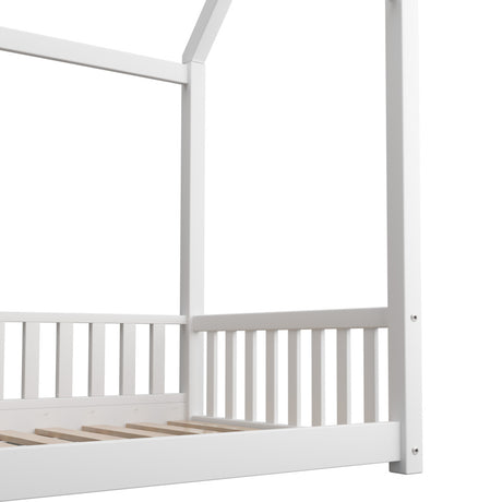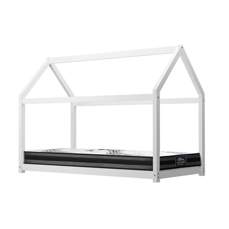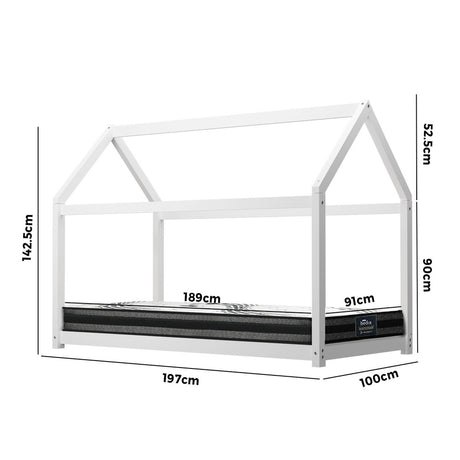 Oikiture Kids Bed Frame with Single Mattress House Style White