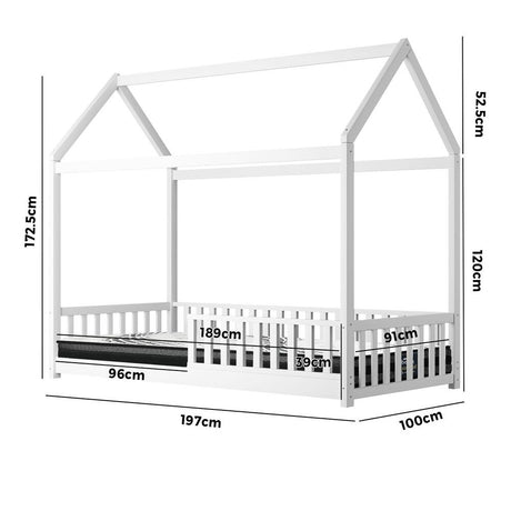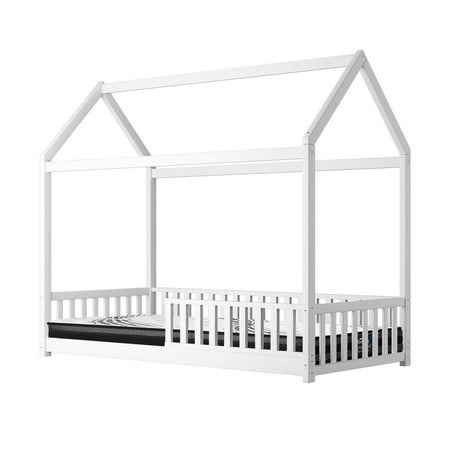 Oikiture Kids Bed Frame With Single Mattress House Frame White
