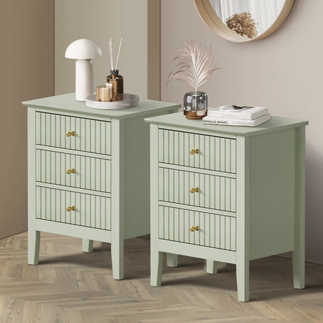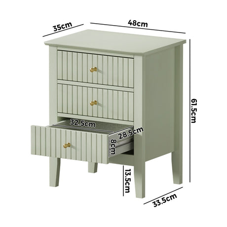 Oikiture Bedside Table 3 Drawers Side End Nightstand Green
