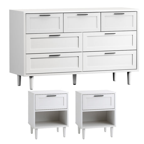 Oikiture Bedroom Set 7 Chest of Drawers and 2 Bedside Tables White