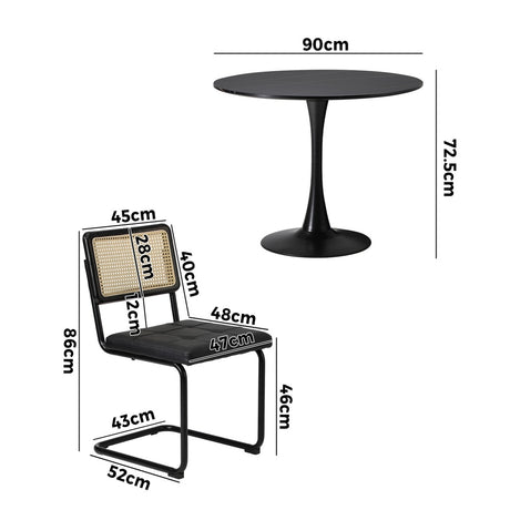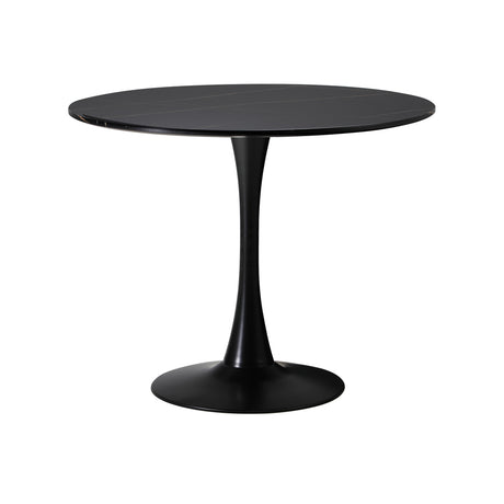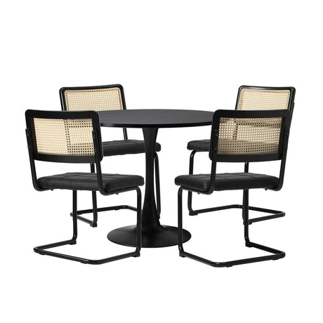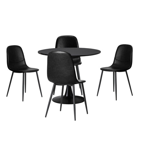 Oikiture 90cm Round Dining Table with 4x Dining Chairs PU Leather Black