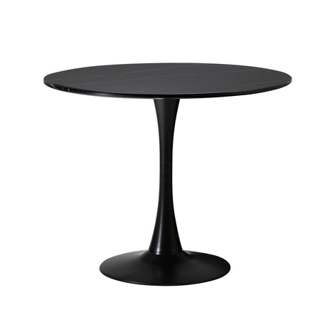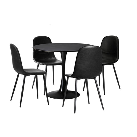 Oikiture 90cm Round Dining Table with 4PCS Dining Chairs PU Leather Black