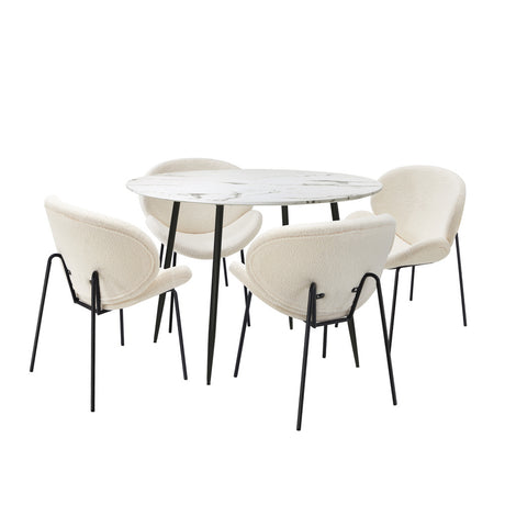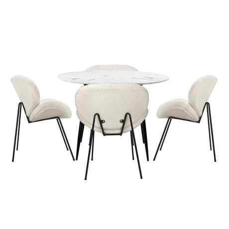 Oikiture 110cm Round Dining Table with 4PCS Chairs White Sherpa