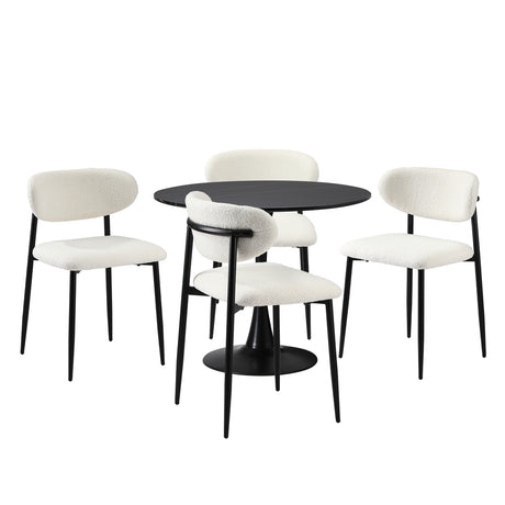 Oikiture 90cm Round Dining Table with 4x Dining Chairs Boucle Black&White