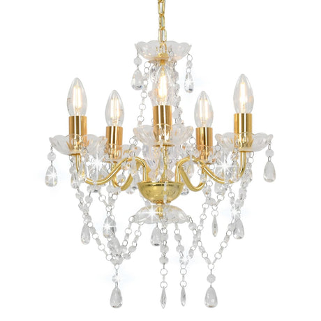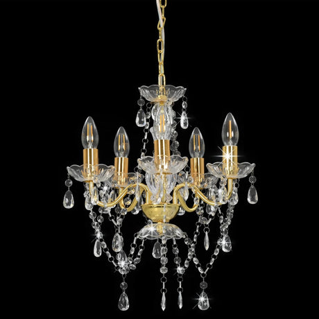 Chandelier with Crystal Beads Golden Round 5 x E14