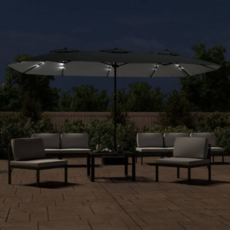Double-Head Garden Parasol with LEDs Anthracite 316x145 cm