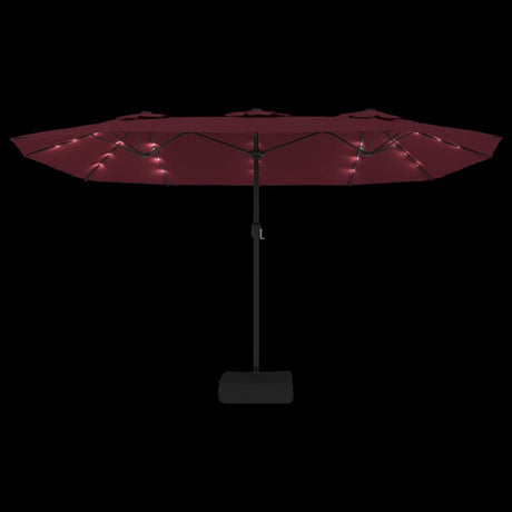 Double-Head Garden Parasol with LEDs Bordeaux Red 316x145 cm