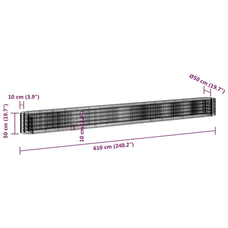 Gabion Raised Bed Galvanised Iron 610x50x50 cm