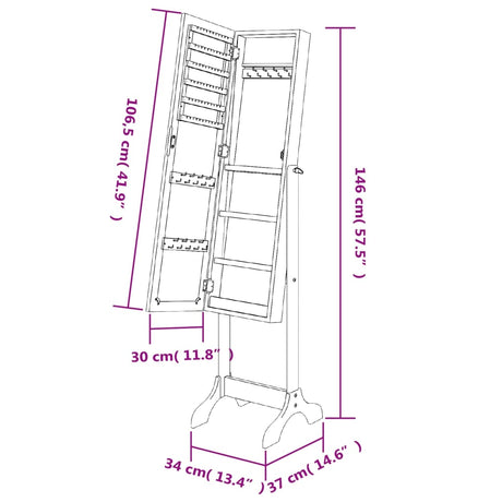 Free-Standing Mirror White 34x37x146 cm