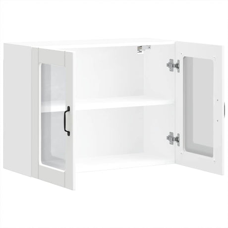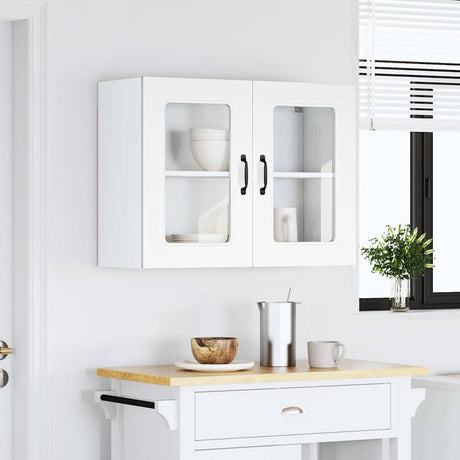 Kitchen Wall Cabinet with Glass Door Kalmar White Engineered Wood
