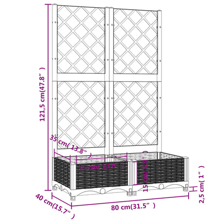 Garden Planter with Trellis Black 80x40x121.5 cm PP
