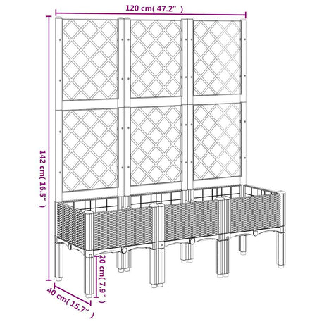 Garden Planter with Trellis Black 120x40x142 cm PP