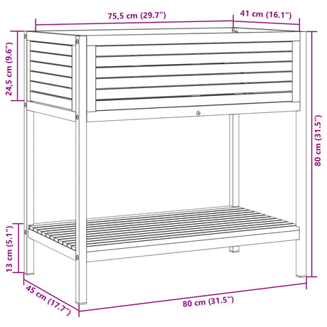 Garden Planter with Shelf 80x45x80 cm Solid Wood Acacia and Steel