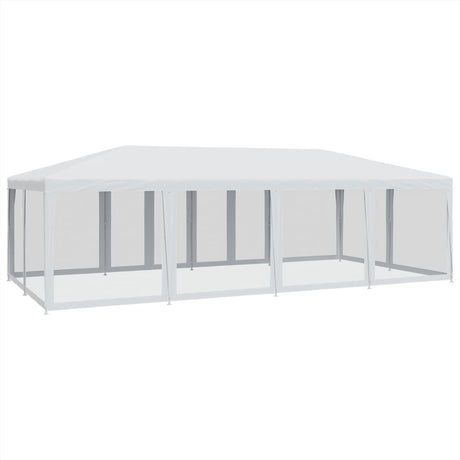 Party Tent with 12 Mesh Sidewalls White 8x4 m HDPE