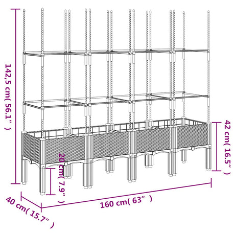 Garden Planter with Trellis Blue Grey 160x40x140 cm PP