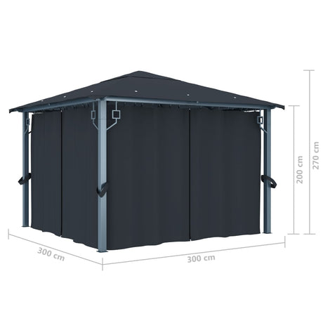 Gazebo with Curtain 300x300 cm Anthracite Aluminium