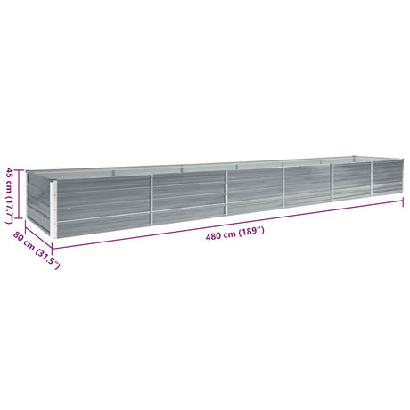Garden Raised Bed Galvanised Steel 480x80x45 cm Grey