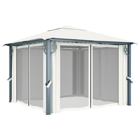 Gazebo with Curtain 400x300 cm Cream Aluminium