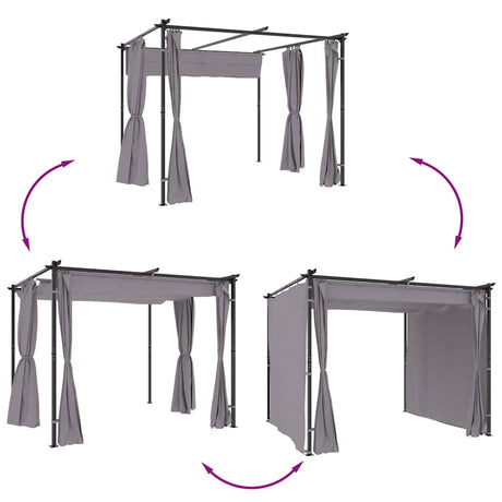 Gazebo with Curtains 3x3 m Anthracite Steel