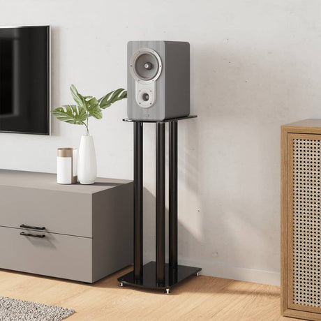 Speaker Stands 2 pcs Black Tempered Glass 1 Pillar Design