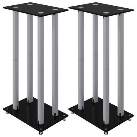 Speaker Stands 2 pcs Black&Silver Tempered Glass 4 Pillars Design