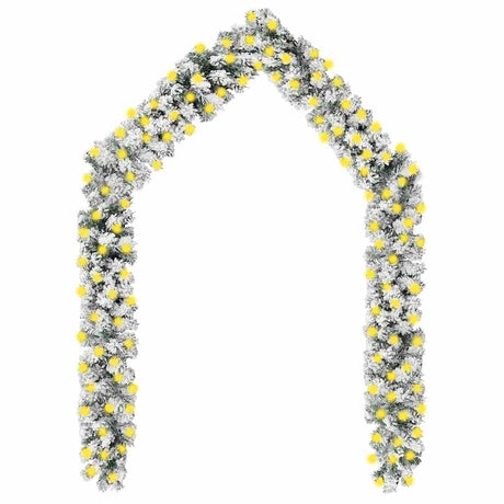 Christmas Garland with LEDs&Flocked Snow Green 10 m PVC